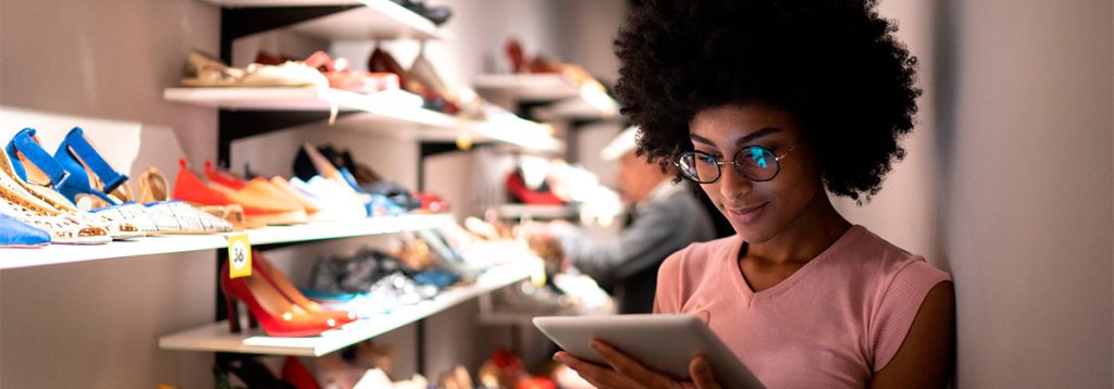A integração de mostruário, estoque e pagamento em um só lugar agiliza muito a experiência de compra pelo cliente. É possível fazer checagens, analisar detalhes e sair com o produto comprado sem a necessidade de ir e voltar, ou pegar filas no caixa. Tudo é feito por um tablet, celular ou qualquer outro dispositivo.